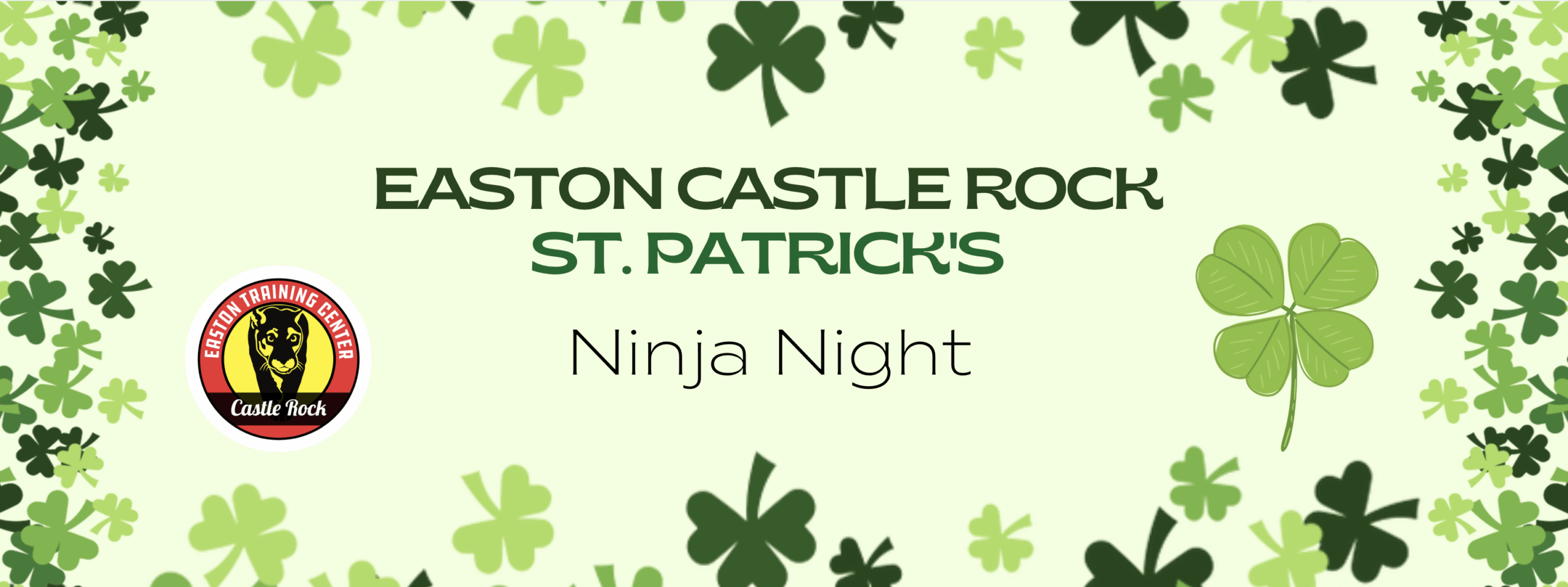 Join the Easton Castle Rock kids coaches for a St. Patrick’s Ninja Night event on Saturday, March 7th. We are so excited to celebrate this fun holiday with a pizza party, scavenger hunt for pots of gold, and a ton of games!