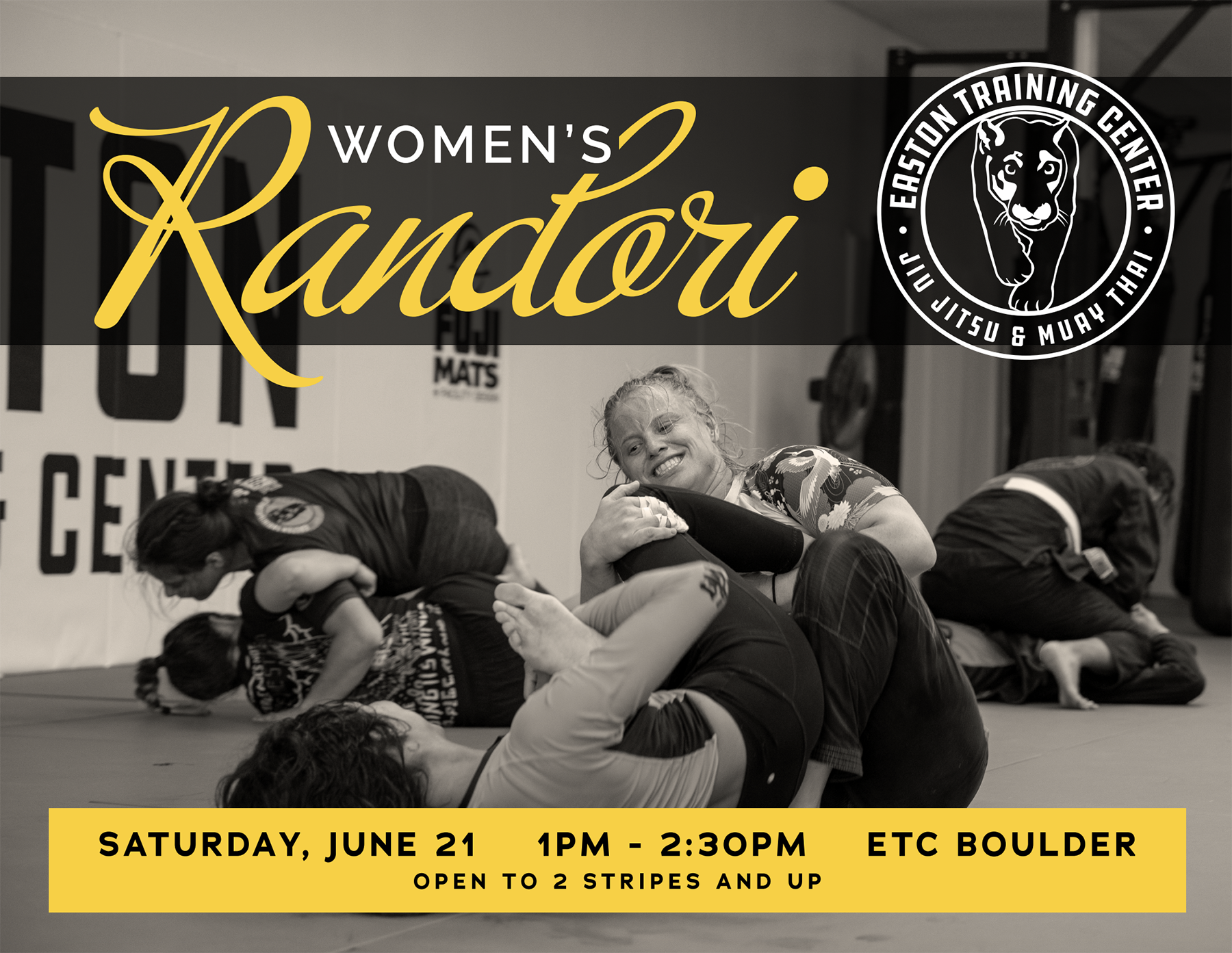 We’re kicking off the summer with an All-Women’s Randori, welcome to all women in our community with white belts 2 stripes and up. Whether you’re an Easton regular or training at another school, come roll and connect with other women who share the love of jiu-jitsu. This is a great chance to get hard rounds in with the women’s jiu jitsu community of CO!